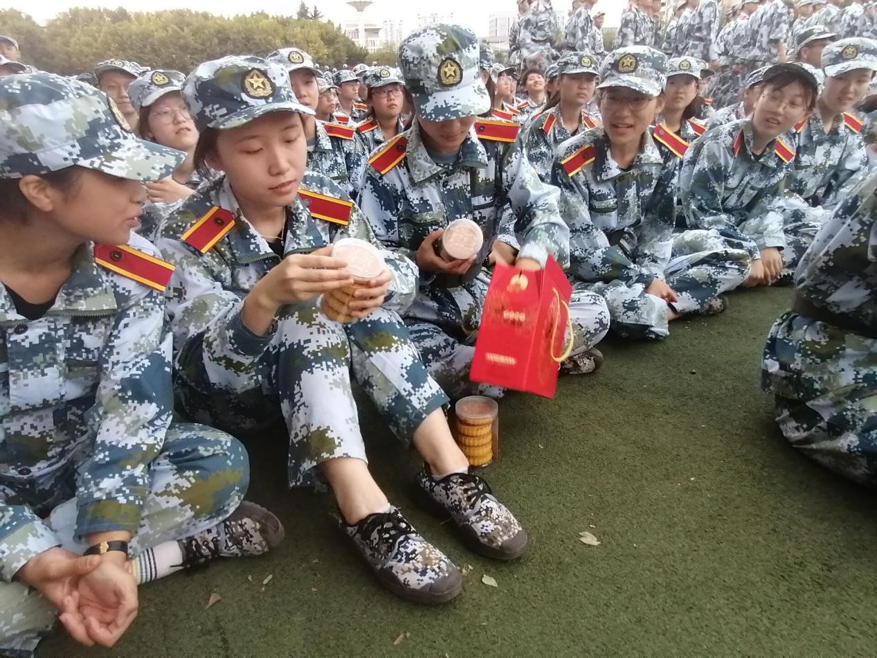 杨书记肯定了同学们的军训成果,同时也指出了军训在大学生活中的重要意义,他说:“军训,不仅可以磨练同学们的意志,培养同学们吃苦耐劳、艰苦奋斗的精神,也培养了同学们的集体荣誉感,让同学们从生疏逐渐走向熟悉,培养同学之间的感情”。钱书记也对新生同学们表示赞扬和支持,鼓励他们努力学习,展现积极向上的学生风貌。两位老师在发言结束之后,为新生代表们发放精心准备的月饼,并提前祝福同学们有一个愉快、难忘的中秋节。
