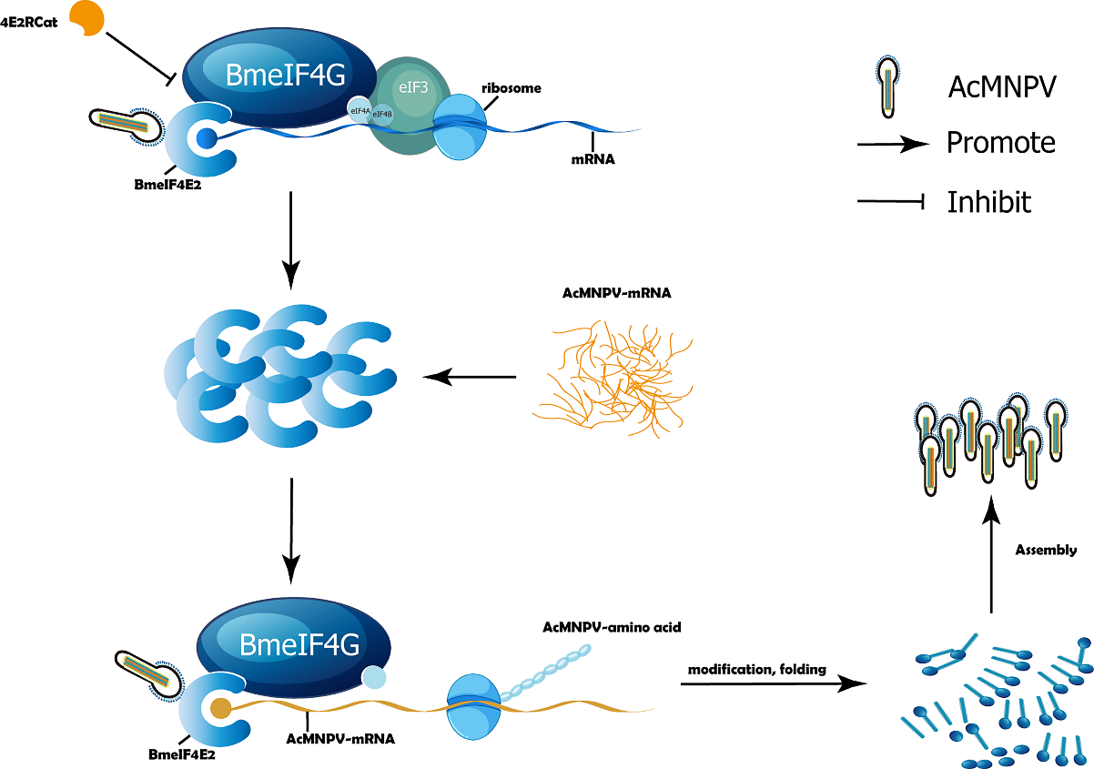 在《Pesticide Biochemistry and Physiology》期刊上发表了题为“BmeIF4E2 promotes AcMNPV infection in the silkworm, Bombyx mori, by direct interaction”的研究论文,研究发现家蚕翻译起始因子BmeIF4E2会直接与AcMNPV病毒结合,促进其感染效率。实验发现过表达该蛋白可加速病毒复制,而抑制剂能短暂阻断病毒增殖。研究结果为杆状病毒应用优化提供了新方向。第一作者为博士生丁心怡和硕士生苏江枝。
