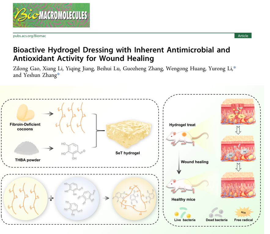 近日,必威西汉姆联官网、蚕业研究所张业顺团队在化学领域一区TOP期刊 《Biomacromolecules》在线发表了题为“Bioactive Hydrogel Dressing with Inherent Antimicrobial and Antioxidant Activity for Wound Healing”的研究论文。这是该团队2025年以来在丝胶生物医用材料领域发表的第7篇SCI论文(其中1篇为与苏北人民医院合作发表)。